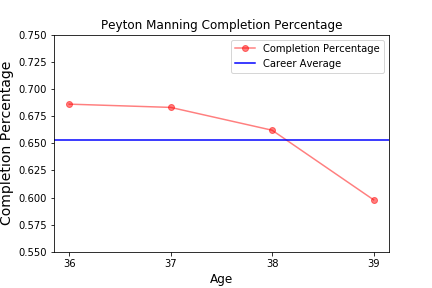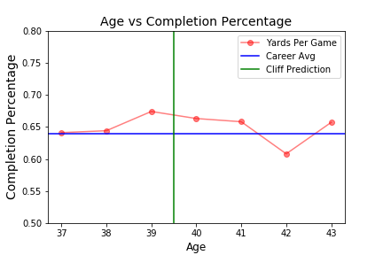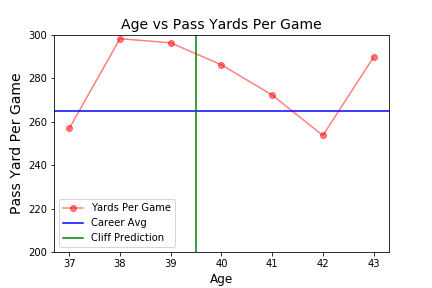 Lastly, we will take a look at other legendary NFL quarterbacks and their play late in their career to see if there is any trend between them and Tom Brady, potentially giving insight regarding when Tom Brady will fall victim to his increasing age.