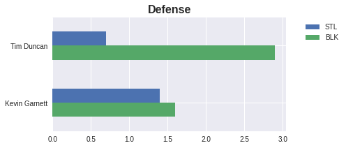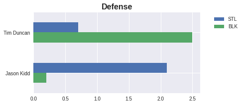 Comparing individual stats for such fundamentally different players does not help much with determining who was more deserving of the award but further illuminates the distinction in playstyles. As discussed earlier and can be clearly observed, Kidd dramatically lagged behind Duncan in points due to the divergence in New Jersey's and San Antonio's offensive approaches. Duncan also posted prolific rebounding numbers at 12.7 per game, though Kidd was similarly exceptional in assists at 9.9 per game. By virtue of his role as the Spurs' premier offensive weapon, Duncan claimed a considerable field goal percentage advantage at 50.8%, yet Jason Kidd was slightly more efficient from the free throw line and actually an okay 3-point shooter at 32.1%. The defensive comparison is almost laughable, as Duncan was elite in blocks at 2.5 and Kidd in steals at 2.1 but neither fared so well in the other category. Finally, Duncan claimed far more win shares, but Kidd's impact was most definitely underestimated due to his relatively low points per game. Kidd's true impact on winning can clearly be seen in his team's legendary turnaround.