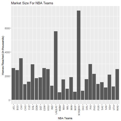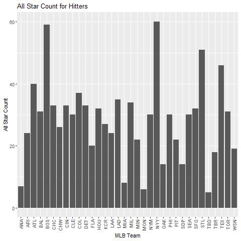 To start off our investigation, we took a look at the distribution of All-Star players amongst NBA and MLB organizations to see whether we could identify a pattern in regards to market size. Regions like New York and Los Angeles represent the largest markets, while teams from New Orleans and Memphis round out smaller fan bases. The 1974-75 season was the first opportunity fans got to vote for their favorite players to be selected on the All-Star teams. Fans had 100% of the control over who would start in the All-Star game during this time. In 2016-17, fans began accounting for only 50% of the vote to determine the starters, while players and media made up the other half of the vote. We assumed that because fan voting was a main factor in the All-Star selection process, we would see a trend with market size of NBA and MLB organizations compared to All-Star selection. From the initial graphs, we can’t directly see a correlation between these two categories. In the NBA, teams like the Celtics, Heat, and Spurs have the highest counts in terms of All-Star selections, but are areas that have mid to low market sizes. In the MLB, hitter All-Stars were dominated by the Yankees and the Red Sox, the starting pitchers saw many from the Dodgers and the Red Sox, and a plurality of selections was made from the Yankees and the Dodgers. The Yankees and Dodgers are teams from the biggest markets, but the Red Sox have a very average market.